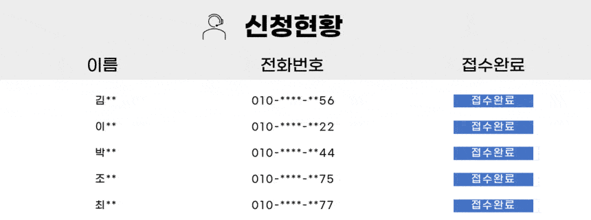 개인정보취급방침은 다음과 같은 내용을 담고 있습니다. 가. 수집하는 개인정보 항목 및 수집방법 - 신청자 이름, 핸드폰 나. 개인정보의 수집 및 이용목적 수집한 개인정보를 다음의 목적을 위해 활용합니다. - 담당자들의 전화 상담 다. 수집한 개인정보의 보유 및 이용기간 - 원칙적으로 개인정보 수집 및 이용목적이 달성된 후에는 해당 정보를 지체 없이 파기합니다.